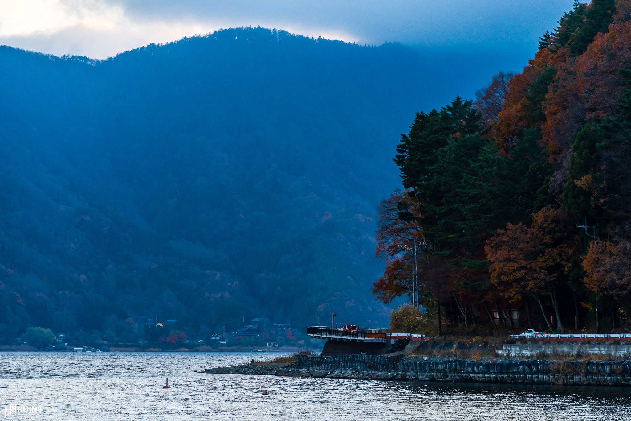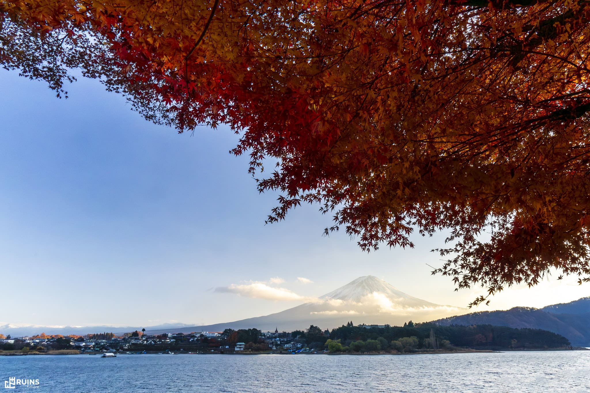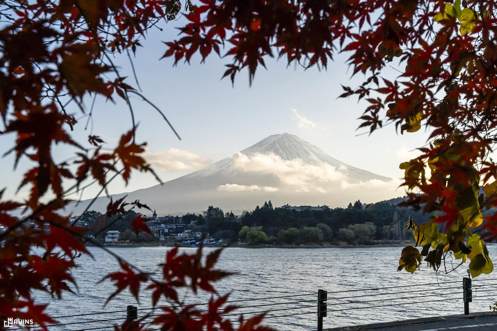 Прямо от станции постоянно отправляются автобусы по трём туристическим маршрутам (красный, зелёный, синий), которые курсируют вокруг озёр Кавагути, Сайко, Седзико и наведывают Мотосуко. На некоторых автобусных остановках можно пересесть с одного маршрута на другой. Честно говоря, два дня в районе Фудзигоко хватит только для того, чтобы получить общее впечатление от вулкана и его окрестностей. Вам стоит заранее спланировать свои активности, потому что предложение велико. Кроме множества видовых точек вдоль береговой линии, вы можете напитаться минералами в термальных источниках (онсенах), поплавать на прогулочном кораблике, подняться на канатной дороге на смотровую площадку, развлечься в парке аттракционов Fuji-Q-Highland или посетить несколько храмовых комплексов и музеев, среди которых Центр Всемирного наследия Фудзисан и музей драгоценных камней Яманаси. Даже если эти возможности вас не очень интересуют, включите что-то из них в запасной план на случай, если вулкан спрячется в тумане. Несколько практических рекомендаций вы найдёте ниже. А нашей основной целью был поиск локаций для любования ноябрьскими красными клёнами и совершенной Фудзи одновременно. Это называется практиковать момидзигари на фоне священной горы 😊. Нам немного не повезло, мы приехали в день международного марафона и туристические автобусы не курсировали до обеда, в результате чего было потеряно пару часов. Нужное место мы нашли на падающем флажке, солнце ещё успело подсветить последними лучами изящные листья японских клёнов и ушло за горизонт прямо на наших глазах, раскрашивая Фудзисан и наползающие на неё облака.