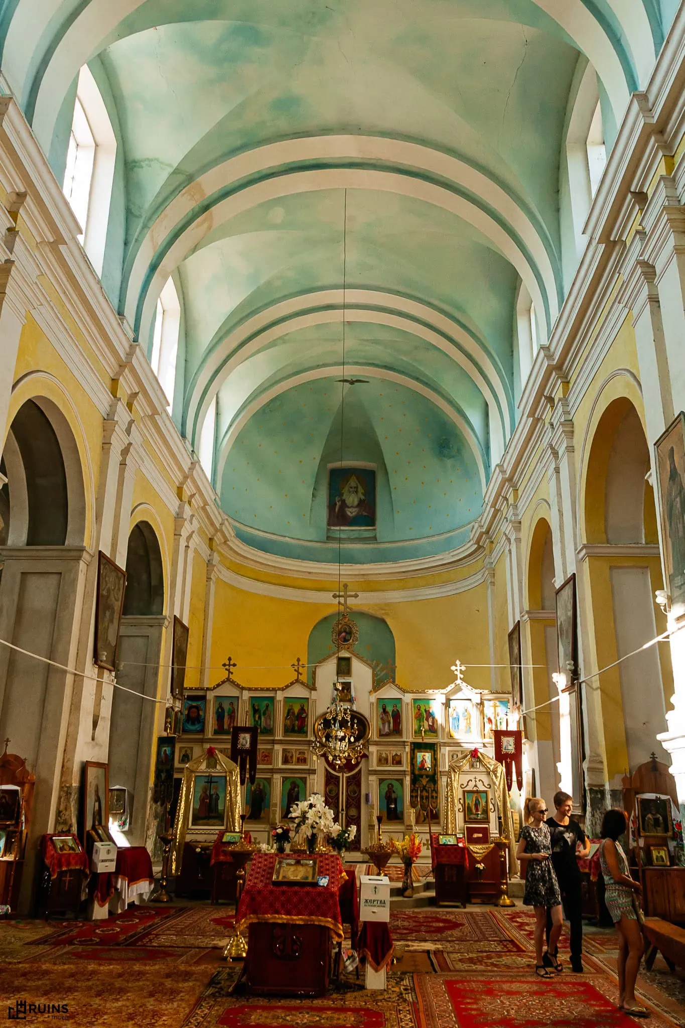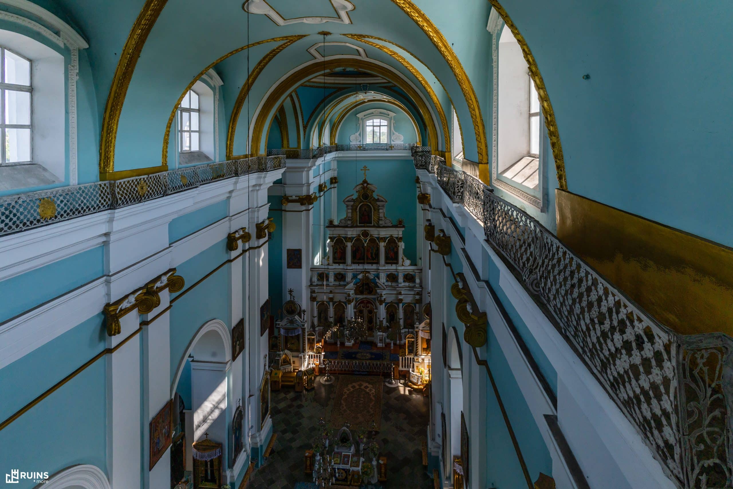На триумфальной балке над пресбитерием висело ещё одно распятие — его и сегодня можно увидеть в нартексе нового храма, — а напротив, словно в опровержение Смерти, над хорами возвышалась жизнеутверждающая картина «Воскрешение Христа». Интересно, что в ризнице находился образ униатского святого мученика Иосафата Кунцевича. Главными же реликвиями служили мощи — св. папы Климента I, римского военачальника св. Евстахия и десяти тысяч римских воинов-мучеников, хранившиеся вместе в небольшом переносном алтаре, освящённом в 1755 году. В общем, мучениками были все: папу утопили🌊, полководца сожгли 🔥, а воинов распяли ❌ разные римские императоры в I–II веках нашей эры. Варвары.