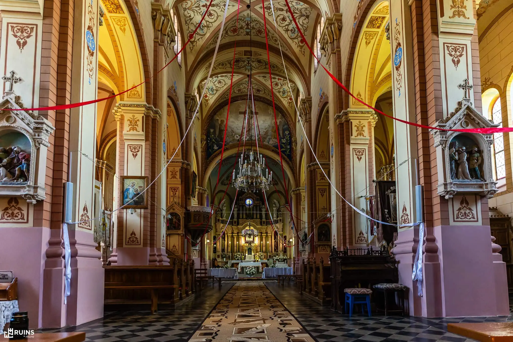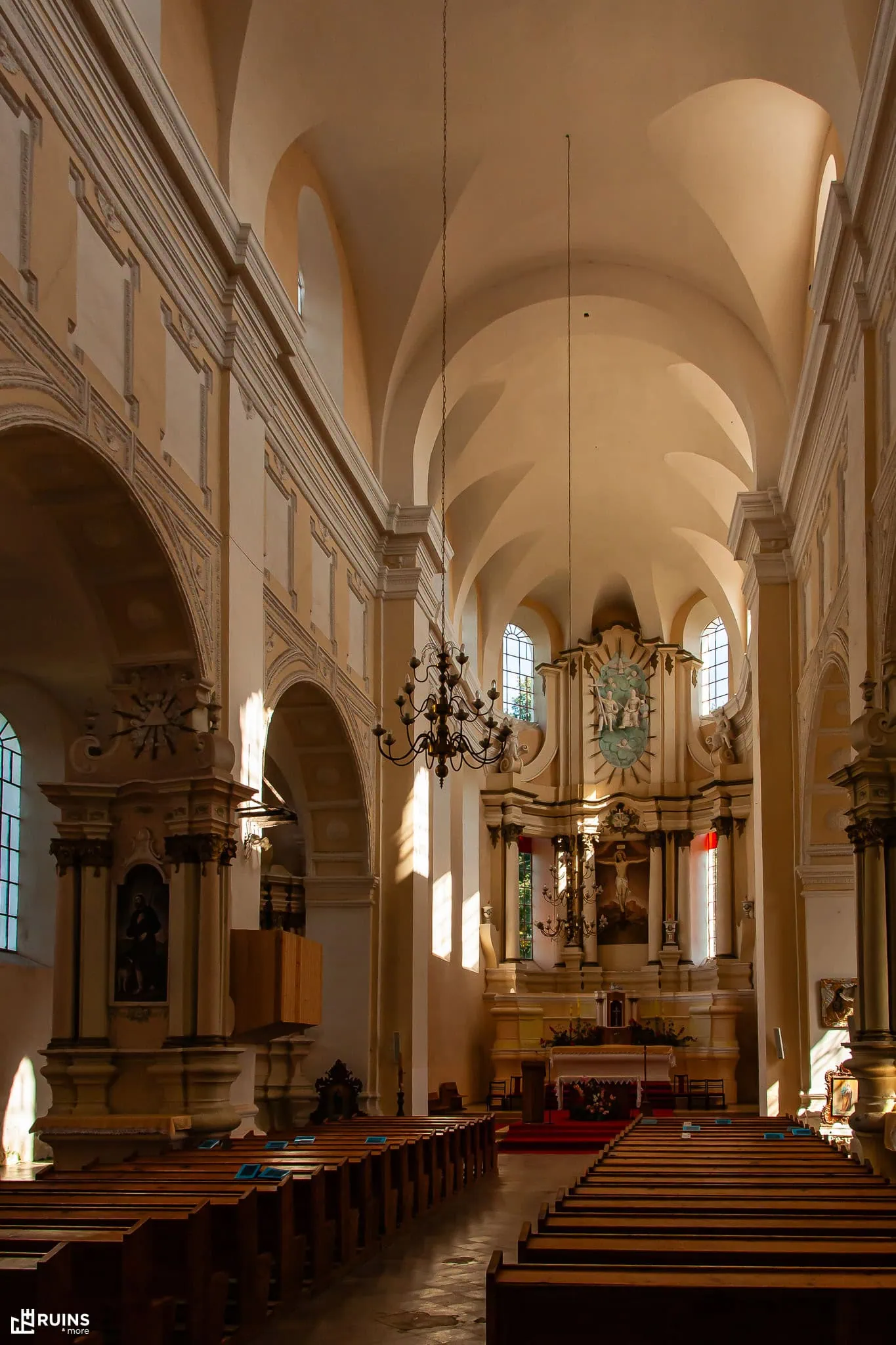 Однако! Опубликованное описание и инвентарь 1783 года показывают, что несмотря на неказистый внешний вид, внутри храм имел весьма богатое убранство и утварь – серебряные кубки (потиры), монстранции, дароносицы, алтарные кресты, оклады икон и вотивные дары – тоже серебряные; роскошные орнаты (литургические одежды ксёндза); европейские церковные издания с гравюрами. Не зря пристраивали ризницу!