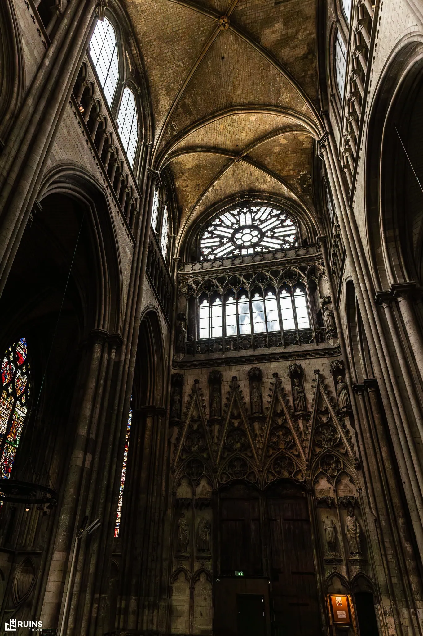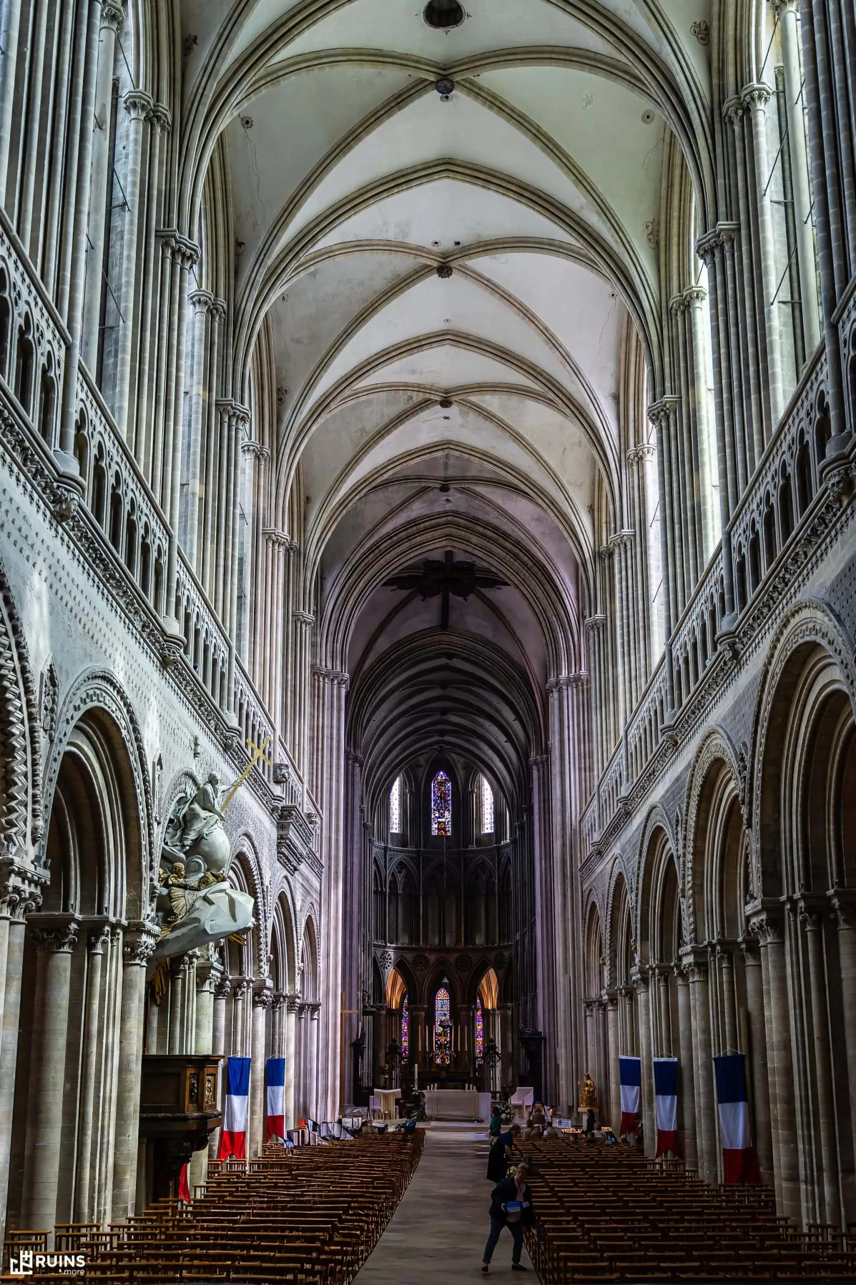 Звучит убедительно и научно, однако, глядя на своды, может показаться, что перед нами вовсе не цилиндрический, а крестовый свод (№3 на иллюстрации), да ещё и с нервюрами (№4). Это, однако, иллюзия — попытка заставить зрителя поверить, что перед нами не романское, а готическое перекрытие.