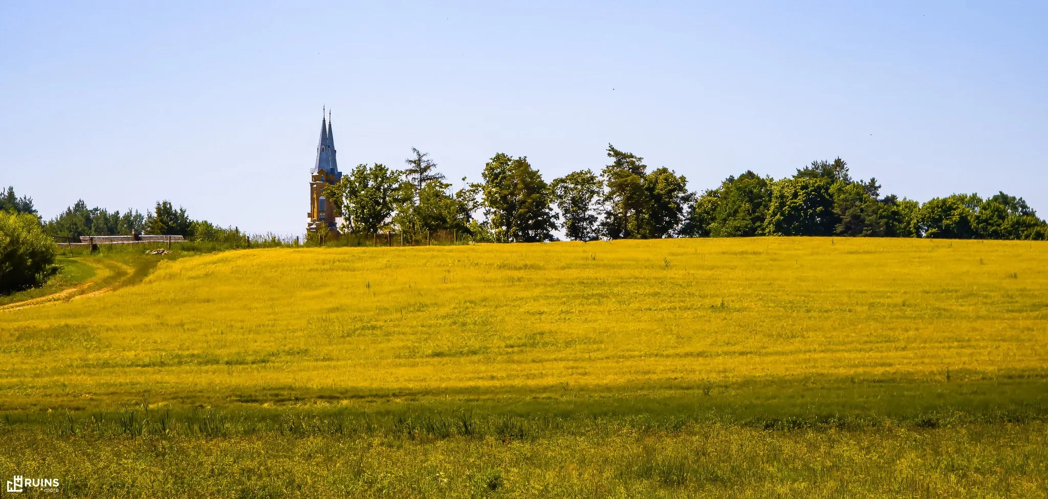Странно использовать термин «изящный» для описания костёла, построенного в романском стиле, пусть даже и в «мажорной» версии начала XX века. Обычно романика — это угрюмая, тяжёлая, приземистая и не балующая декором архитектура, которая впечатляет своей архаичностью и телепортирует воображение зрителя в начало Средних веков или в «Игру престолов». Романские храмы часто выглядят как небольшие крепости с башнями и редкими окнами-бойницами как, например, сицилийский собор в Монреале. Да, они все такие (ну почти 🙃), но костёл св. Михаила Архангела в деревне Белогруда Лидского района Гродненской области, – не такой 😉