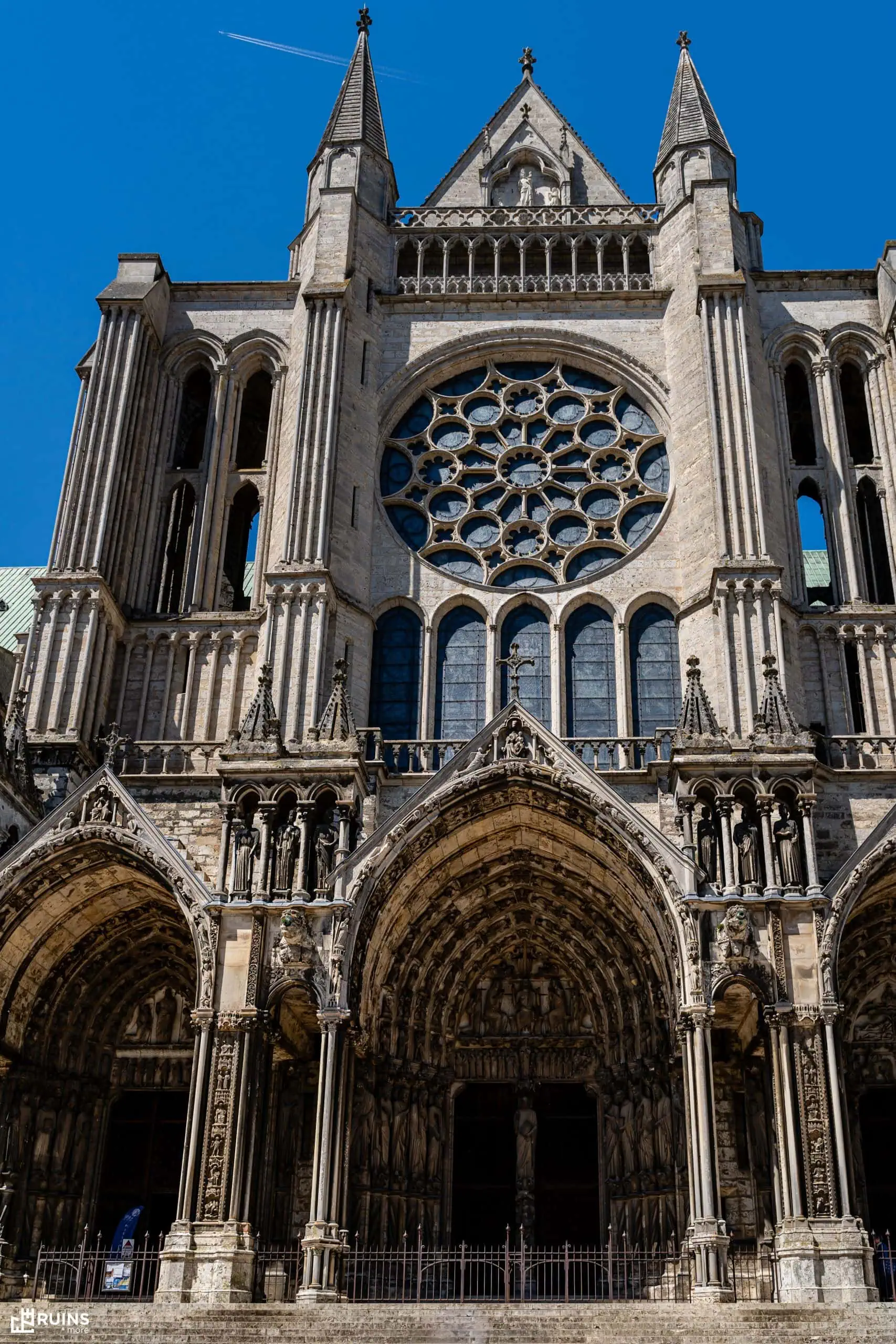 Таким образом, можно сказать, что использование телескопических башен – это готический мотив номер два. И, безусловно, остроконечные шпили с люкарнами напрямую отсылают к французским готическим соборам — например, в Шартре или Амьене. Это, пожалуй, единственная прямая цитата из готики. Любопытно, что на некоторых сохранившихся романских храмах французы позднее надстраивали готические шпили, и они создавали похожее смешанное впечатление (например, собор в Байё).