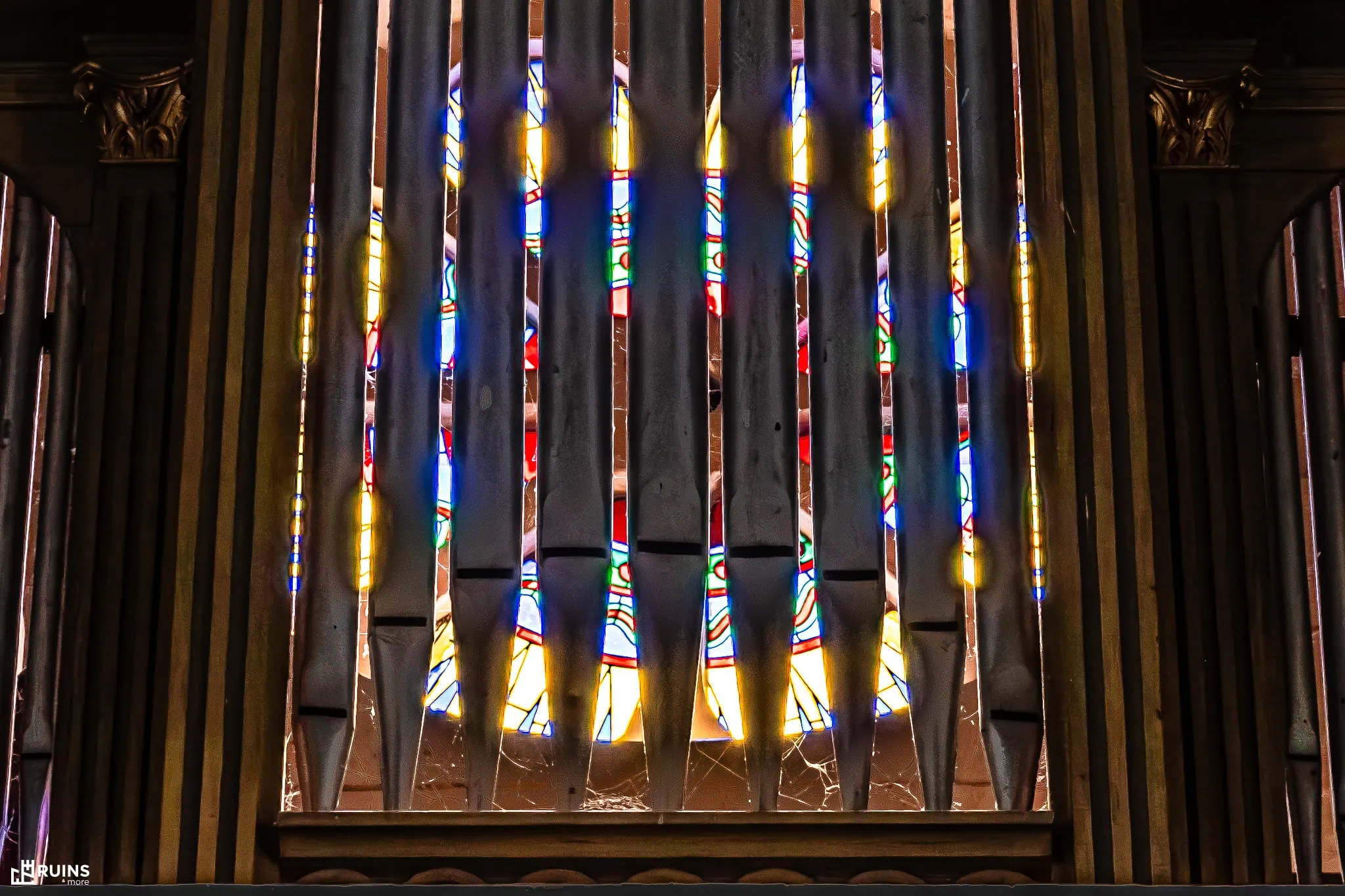 Таким образом, перед нами действительно цилиндрический свод с глубокими распалубками, линии пересечения которых искусно подчёркнуты росписью, но не несут конструктивной нагрузки. Вес свода распределяется по всей толще стен, а не концентрируется на угловых опорах, как в крестовом или нервюрном своде. Это не ошибка и не инженерная несостоятельность, а сознательная мистификация готики — продуманный приём архитектора эпохи историзма, виртуозно играющего с ожиданиями зрителя.